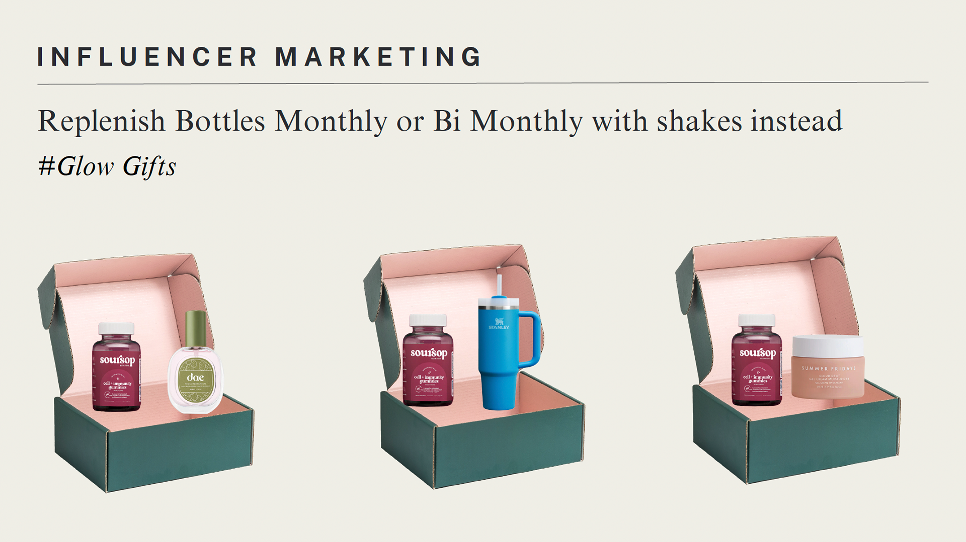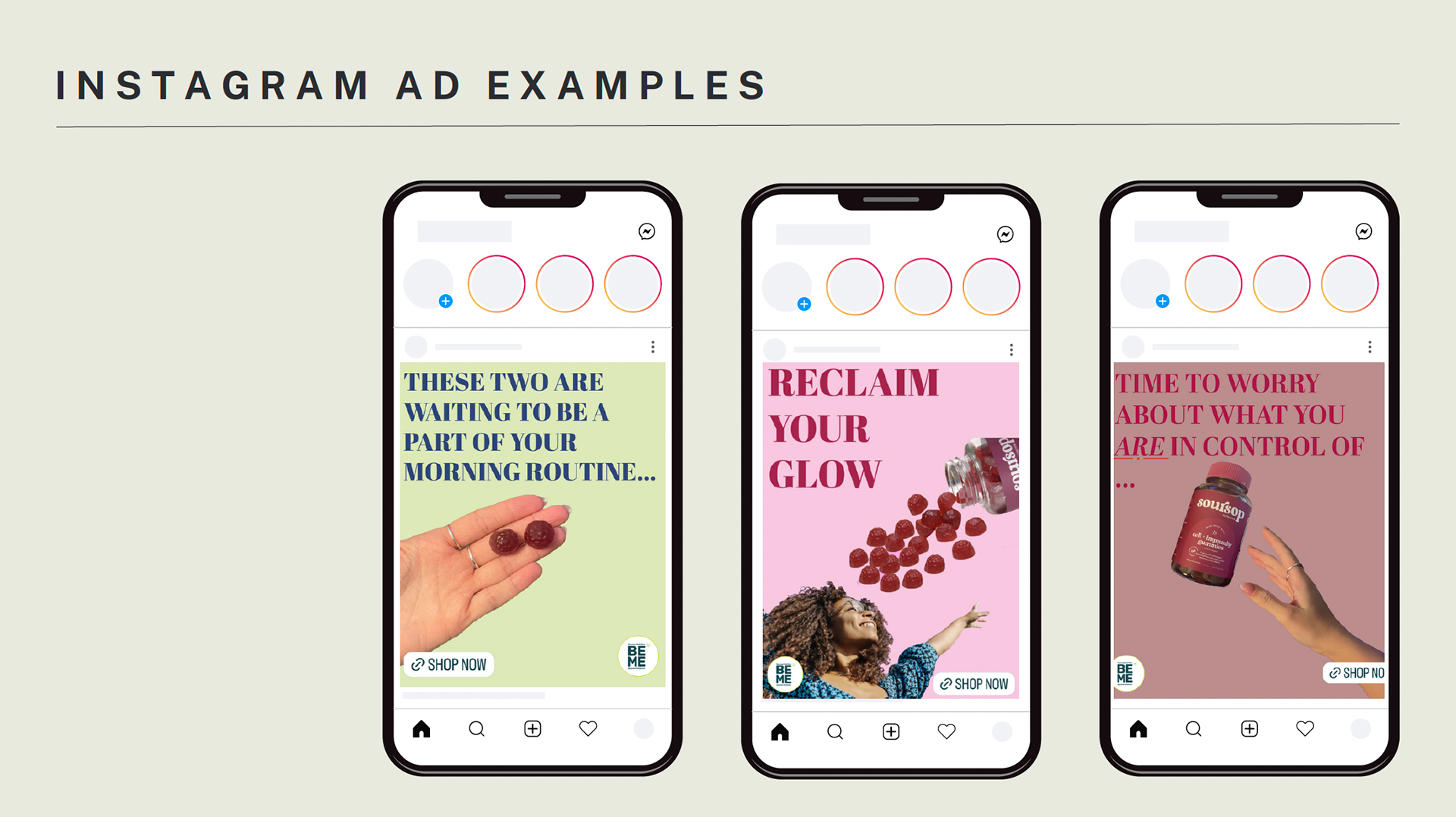 For the creative, we decided it would be smart to partner with influencers on platforms like Instagram and Facebook. We created sample Instagram ads showcasing the Reclaim Your Glow campaign. We also created Glow Gifts for our influencer marketing to increase lifestyle appeal.